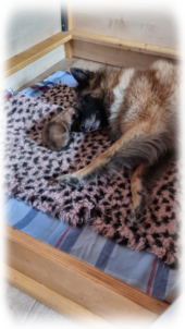 Heute ist Tag 51, Chikimiki hat ihre Wurfkiste entdeckt, macht noch alle Spaziergänge aktiv mit, wir sind guter Dinge dass alles auf natürlichem Wege kommt.