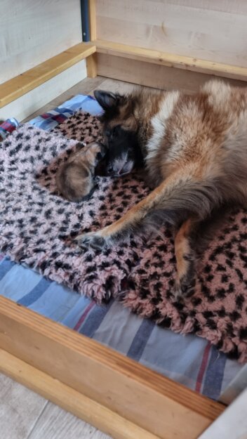 Heute ist Tag 51, Chikimiki hat ihre Wurfkiste entdeckt, macht noch alle Spaziergänge aktiv mit, wir sind guter Dinge dass alles auf natürlichem Wege kommt.